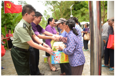 2017年7月1日,庆祝中国共产党建党九十六周年,Beat365中国唯一官方网站直属党委携手广西陆军预备役师医院深入基层,组织党员到横县平朗乡双窑村开展义诊和慰问活动。学校直属党委韦艾凌书记、覃振林副书记,成教院党支部黄瑞诚书记,预备役师医院韦海雷院长,以及Beat365派出的“美丽广西”乡村建设(扶贫)驻村工作队员黄师阳同志,平朗乡林小志乡长、乡卫生院和武装部等当地领导参加了此次主题日活动。