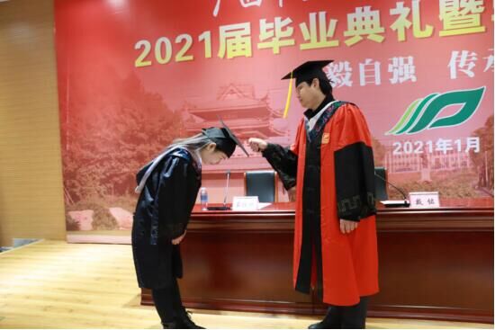 1月9日上午,学校成人高等教育2021届毕业生毕业典礼暨学位授予仪式在明秀校区国教院大楼学术报告厅举行,学校副校长戴铭出席典礼并致辞。直属党总支书记、成人教育学院院长韦艾凌、直属党总支副书记、成人教育学院副院长覃振林、成人教育学院副院长黄瑞诚、成教院全体班主任、2021届优秀毕业生代表及教学点代表等参加了毕业典礼。典礼由黄瑞诚主持。