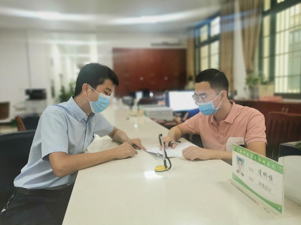 三是保服务,保障业务不打烊、服务不打折。疫情期间,主动作为,全面推行“零接触”服务,通过网上报销和自动投单系统,照常受理业务。在附属第一医院、附属瑞康医院、附属国际壮医医院部署自动报销投单机,方便在附属医院工作的师生员工办理报销业务。通过“广西中国医药大学网报系统交流群”,及时解答师生报销疑问,提供政策咨询,覆盖人群超过2200人。积极协助师生员工办理2019年个人所得税年度汇算清缴,并在申报截止日当天通过电话通知、上门服务、现场协助等多种方式,帮助205名教职工及时办理退税,让师生员工切实享受到国家政策红利。做好点餐系统维护,协力后勤部门每天为教职工提供送餐将近50份,保障教职工用餐安全。