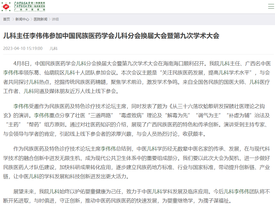 儿科李伟伟主任参加中国民族医药学会儿科分会换届大会暨第九次学术大会