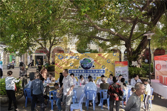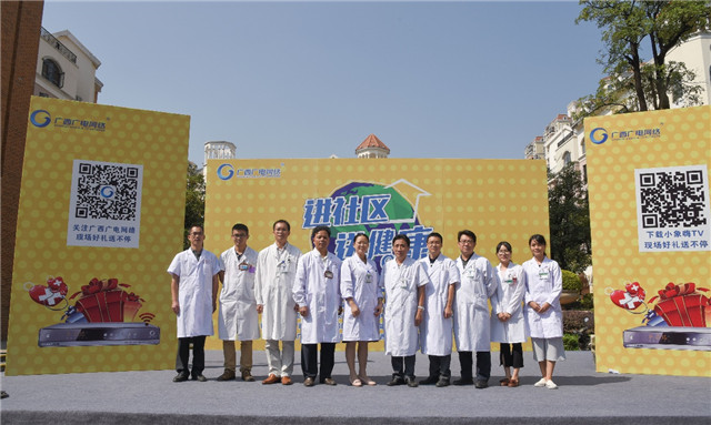 10月29日秋风送爽,阳光明媚, Beat365中国唯一官方网站第一附属医院的教授专家团队与广西影视频道《健康老友道》栏目组再次携手,来到江南普罗旺斯广场共同举办了“进社区 送健康”大型社区义诊系列公益活动,本次活动为系列活动的第五场。