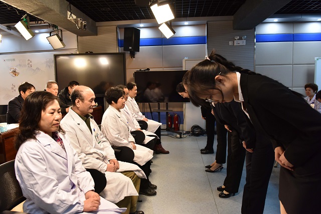 2019年2月18日上午,第一临床医学院2015级中医卓越班拜师仪式在医院教学部录播室举行。学校教务处处长唐梅文,副处长杨仕权,学院党委副书记、副院长钟远鸣、学生导师、教学部负责人及2015级中医卓越班的31位同学参加了拜师仪式。拜师仪式由教学部黄彬主任主持。