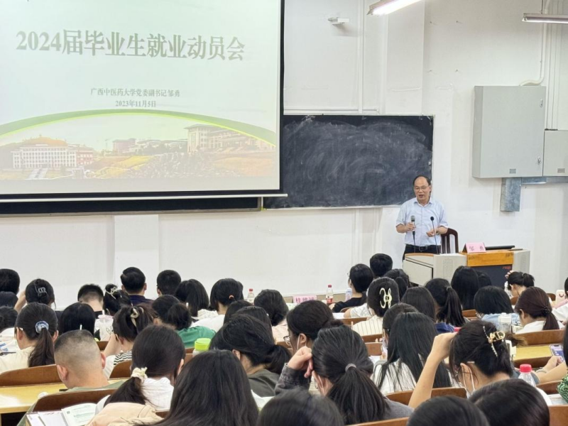 11月5日下午,第一临床医学院在明秀校区东梯二教室召开学院“双选会”就业动员会。学校党委副书记邹勇到会并作就业动员讲话。学校招生与就业处处长肖华业、学院党委书记桂雄斌、田东县中医医院副院长刘春光、学院全体辅导员和280名2024届毕业生参加了本次动员会。
