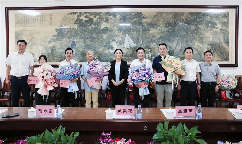 活动现场,姚春为黄瑾明教授、黄鼎坚教授及驻村第一书记覃成龙、玉延,学生代表邓雪珍赠送鲜花和慰问金,并向岑秀金、高冀萍等6位老党员颁发“光荣在党50年”纪念章。