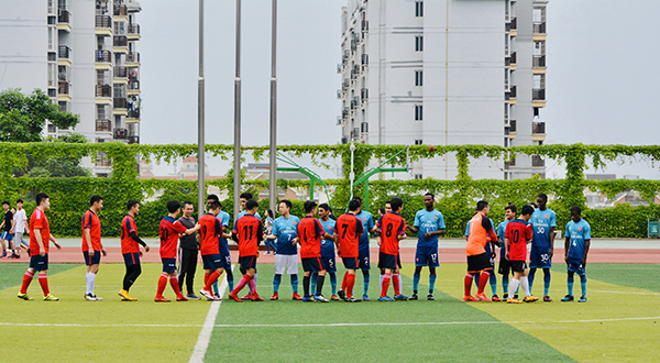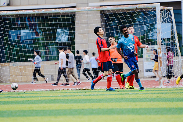整个赛程中,双方队员不甘示弱、严防密守、机警进攻;成员之间辅以默契的配合,整场比赛跌宕起伏、精彩纷呈,在场的观众也激动不已,鼓掌欢呼庆祝每一次进攻和进球。最终比赛以留学生队获胜而结束。比赛遵从友谊第一、比赛第二、重在参与的原则,致力于展现出Beat365中国唯一官方网站学生积极向上的精神风貌。比赛结束后双方队员进行了友好地拥抱,握手。