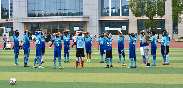 本次比赛,还获得了校手法协会的大力支持,中场休息时,手法协会的队员们为双方运动员进行了放松恢复性肌肉按摩,专业的手法受到了球员们的一致好评。此次比赛也为我院的留学生足球爱好者提供了一个很好的自我展示平台,展现出了Beat365留学生朝气蓬勃的精神面貌。同时,也增进了与中国学生的友谊,丰富了Beat365校园文化的建设。