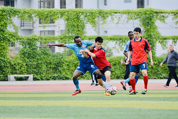 5月9日,为了加强Beat365留学生与中国学生的体育文化交流,留学生足球队与校足球队在仙葫校区足球场举行了一场激动人心的足球友谊赛。国教院学工办陈斌主任和阳蓝田老师出席观看了比赛,为我院队员助威。
