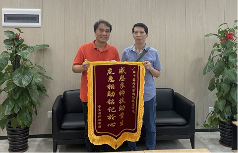 国教院副院长韦文朗代表国教院接受患病港生锦旗