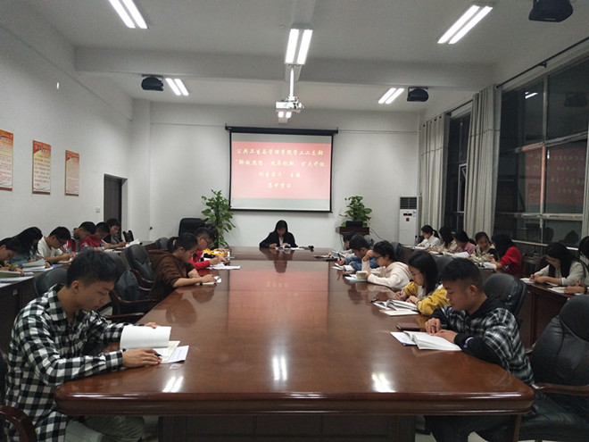 10月23日晚,公共卫生与管理学院学工第二党支部“不忘初心、牢记使命”主题教育在仙葫校区大学生活动中心A317举行。二支部副书记庞邦君同志带领全体党员、预备党员开展了集中学习及深入研讨。