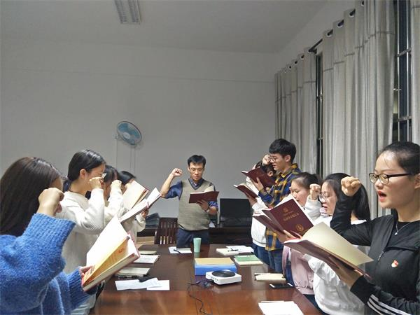 会议第三项,支部书记宋南主持开展了重温入党誓词的活动,带领学生党员回顾入党的初心以及立下的庄严誓词,永远不忘初心,牢记自己的使命与担当。