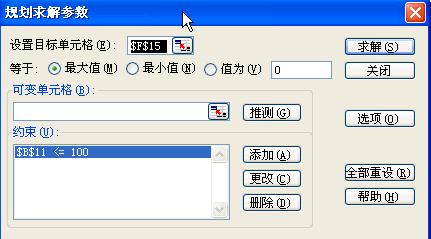 推测:单击此按钮,自动推测“设置目标单元格”框中的公式所引用的所有非公式单元格,并在“可变单元格”框中定位这些单元格的引用。
