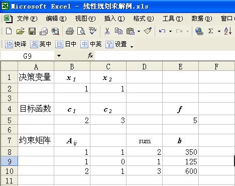 (2)以实例1为例练习在空白模型窗口中输入待求解模型