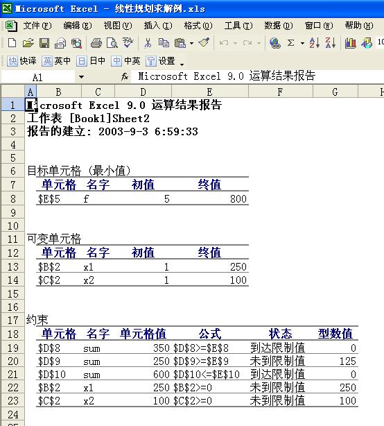 当所有参数都设置完使,点击求解按钮,将显示求解结果,同时可以根据求解结果显示相关敏感分析报告。