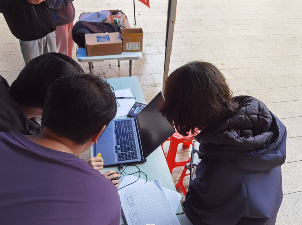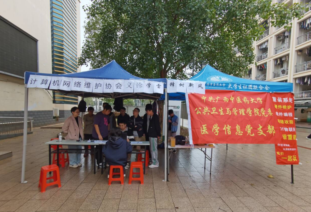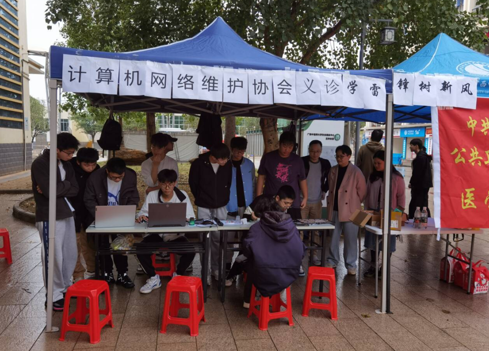 计算机网络维护协会的志愿者为学生检修电脑