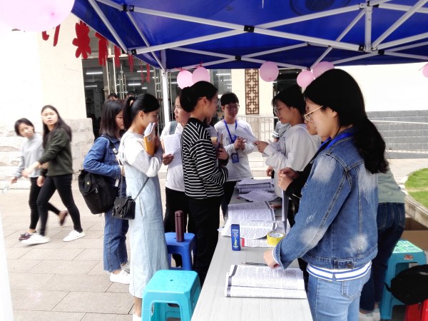 为了积极响应征兵的工作需要,做好今年征兵宣传工作,提高适龄青年参军入伍的积极性,我院决定开展以“志向国防,勇抗大旗;携笔从戎,铁血筑梦”为主题的征兵系列宣传活动。2018年4月25日至26日,我院团委学生会联合我院易班学生工作站在仙葫校区五合食堂门口开展以“志向国防,勇抗大旗;携笔从戎,铁血筑梦”征兵知识有奖问答活动。