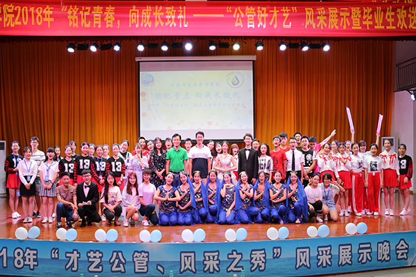 我院于2018年6月10日晚19:00-21:30在仙葫校区小礼堂举办了以“铭记青春,向成长致礼”为主题的“公管好才艺”风采展示暨毕业生欢送晚会,校团委王雄将老师、我院学生工作办公室主任宋南老师、团委书记鲁蕴律老师、医科大信管学院代表及Beat365各兄弟学院代表出席了此次晚会,我院全体同学热烈响应,积极参与。