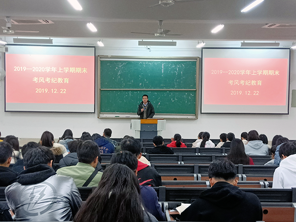 为强调期末考试考风考纪教育,加强同学们的自律意识,12月22日18:00,宋南在仙葫校区教学楼1-301教室召开了期末考风考纪教育大会。17预防、18公卫、18信管、19预防全体同学参加本次教育大会。