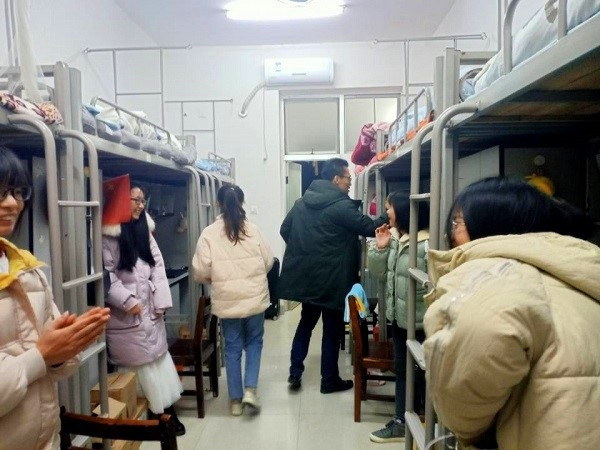 宋南假前走访学生宿舍 来源:公管学办 作者:公管学办 发布时间:2019-12-29 17:05:19 浏览次数: 次 【字体:小 大】 12月26日20:10,宋南对所带班级进行一次宿舍安全卫生检查。 在走访的过程中,宋南详细询问同学们课业和课余生活,强调了良好舍风的重要性,对同学们遇到的困难与问题提出了有效的建议。进入期考备考阶段,宋南提醒同学们合理安排时间,做好期考准备。宋南还着重强调了宿舍严禁使用违禁电器和寒假放假的安全问题,进一步加强了学生的安全问题。 此次走访,加深了师生之间的交流,使同学们体会到老师的关心与温暖,对同学们的学习与生活起到积极鼓励作用。 走访现场 分享到: 【打印正文】