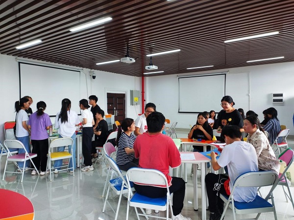 活动中同学们分成4组,“破冰”环节,梁宝桐要求各组结合全国甲卷高考作文题制作Beat365招生宣传海报,同学们在制作过程中畅所欲言、集思广益、分工明确,积极展示海报设计思路,有效锻炼了小组间的团队协作能力和沟通组织能力。接着,梁宝桐带领各小组进入“寻找真我角色”与“我的学习探索”练习,通过练习告诉同学们应对压力最好的方式是社交。随后进行了“哑人筑塔”游戏,同学们从游戏中明白了语言表达与相互理解的重要性。最后,梁宝桐殷切期望我院学生今后能积极参加社交活动,释放压力。