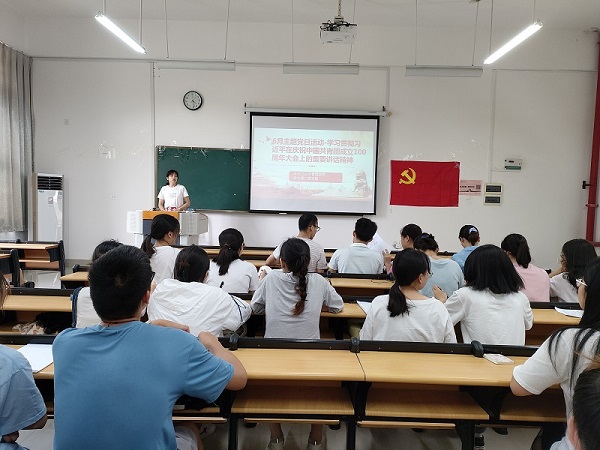 为深入学习领会习近平总书记重要讲话的深刻内涵,深刻把握青年新时代中国青年运动和青年工作的重大课题,汲取智慧和力量。6月13日下午公共卫生与管理学院学生第二党支部于仙葫校区教学楼2-207组织全体成员开展“学习贯彻习近平在庆祝共青团成立100周年大会上的重要讲话”主题党日活动。