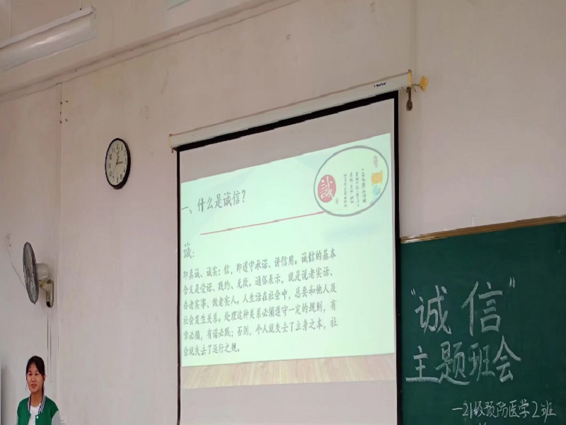2022年6月17日,2021级预防医学专业在Beat365中国唯一官方网站仙葫校区教学楼2-205教室开展“诚信考试”主题班会,该班会由团支书廖华宁主持。该班会意在让同学们明确“诚信”的含义,理解诚信对学生自身发展和为人处世的我重要意义;使同学们崇尚诚信,远离虚伪欺骗,把诚信作为同学之间、师生之间、家庭成员之间相处的基本原则;使同学重视学习,重视考试,懂得诚实守信必须从我做起,从现在做起,落实在日常的学习生活中。