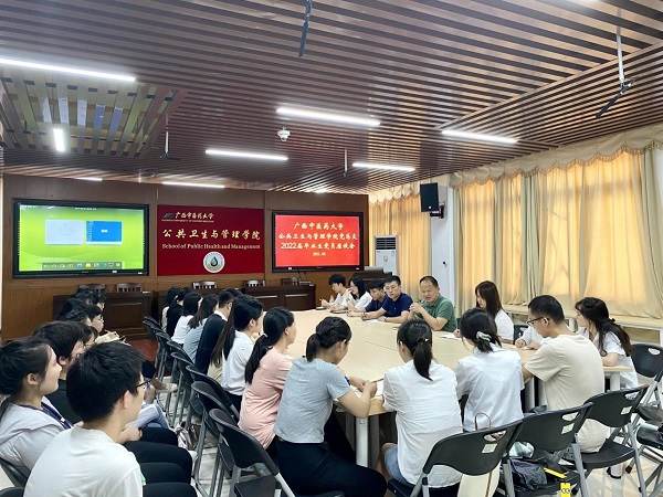 为增强我院毕业生党员对中国共产党的了解,进一步教育和帮助毕业生党员坚定党的理想信念,公共卫生与管理学院于2022年6月28日16:00在自诚楼A801召开毕业生党员离校座谈会。会议由我院党总支书记李怀泽主持,党支部书记宋南与全体毕业生党员参加了本次会议。