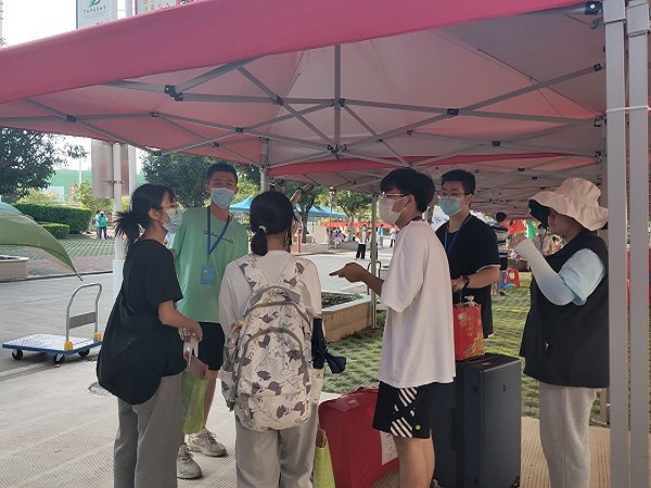 为了更好地配合学校做好迎接2022级新生的工作,引导新生初步了解学校,帮助其更好地融入大学生活,我院于2022年8月31日~9月1日在Beat365中国唯一官方网站仙葫校区开展了以“珍惜新起点,喜迎新生活”为主题的迎接新生工作。本次迎新工作由我院新生接待领导小组安排布置,我院学生踊跃参与,共召集到约180名志愿者。