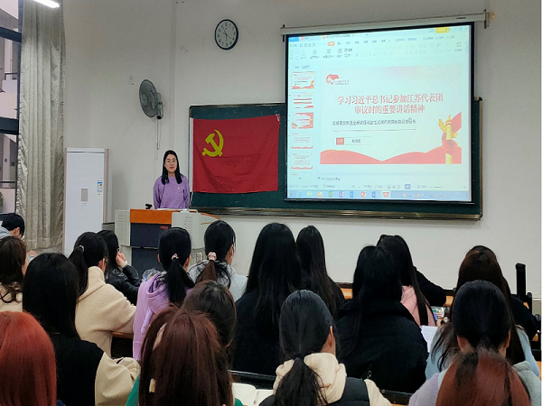为学习贯彻2023年全国两会精神,公共卫生与管理学院党委学生第三党支部3月28日17:30于教学楼1-114开展3月党课学习,学习习近平总书记参加江苏代表团审议时的重要讲话精神。本次学习由支部书记唐梧茜主持,支部副书记杜佳恒主讲,全体支部成员参与。