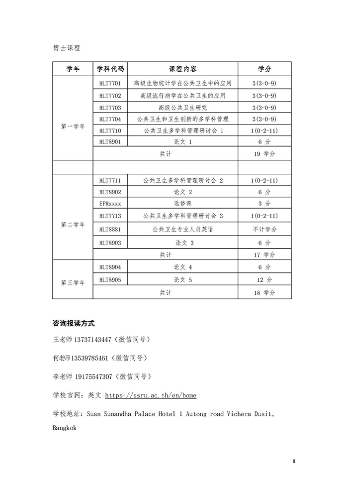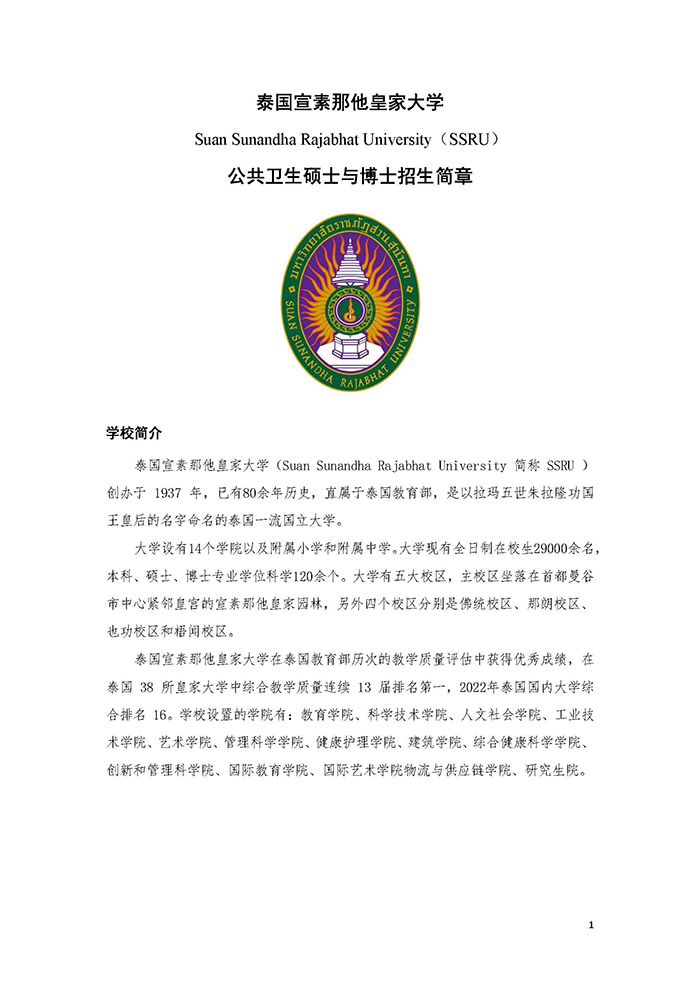 泰国宣素那他皇家大学公共卫生硕博专业招生简章