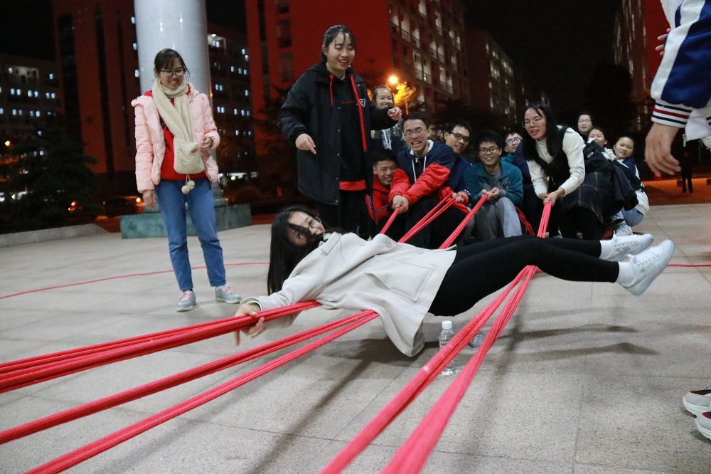 此次荧光团辅活动是本学期心理健康教育教研室系列活动中最大型的一次,从学校到梦空间发起,2017级和2018级临床专业的8个班级以年级为单位组成联队对抗。以田径场为据点,围绕仙葫校区8个地点争夺并展开不同的团辅活动。“雷区取水”建立信任,“管道运输”体现合作与信任,“穿越雷阵”考验耐心、“不倒森林”不倒的是坚持……各班除完成本班的项目,更需要在班级间通力合作才能完成最终挑战。奔跑在学校各个场地的不仅是奋力前行的身影,更是熠熠生辉、齐心协力的团队凝聚力。