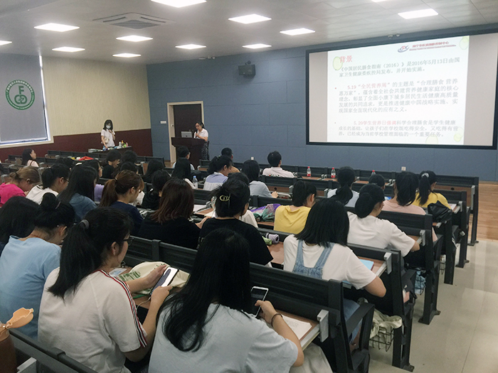 应教工一支部之邀,南宁市疾控中心吕忠其、施向东两位营养学专家组织多名技术员到Beat365中国唯一官方网站仙葫校区开展“合理膳食,吃出健康”主题教育宣传活动。活动开始,由施向东主任医师为师生讲解营养基础知识,结合《中国居民膳食指南》向学师生讲解食用“杂粮”、多吃“深绿色蔬菜”、保持“平衡膳食”、“吃动平衡”和“三控”的健康理念,让师生深入感受“膳食有指南,平衡并不难”、“营养提高生命质量,指南引导健康生活”的重要性。本次活动通过有奖问答、调查问卷、发放宣传折页等多种形式开展,大幅提升了师生的参与度,活跃了讲座氛围,使师生在轻松愉悦的课堂中学到知识。
