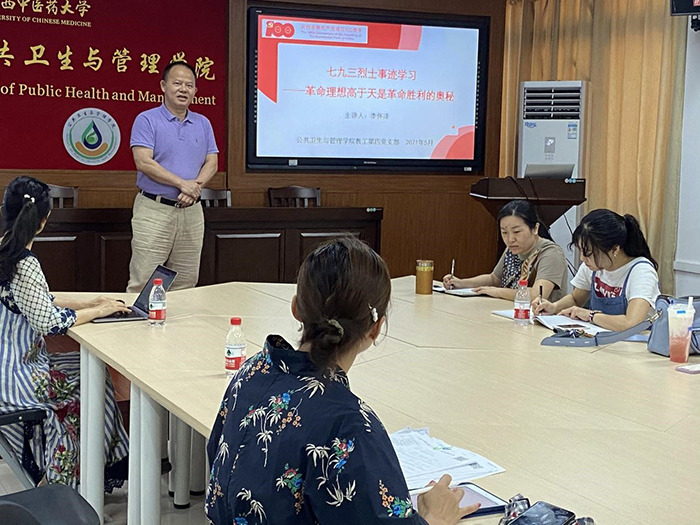 2021年5月18日,公共卫生与管理学院党总支书记李怀泽,以一名普通党员同志的身份,给教工第四党支部全体党员上了一堂主题为“七九三烈士事迹学习——革命理想高于天是革命胜利的奥秘”的党课。