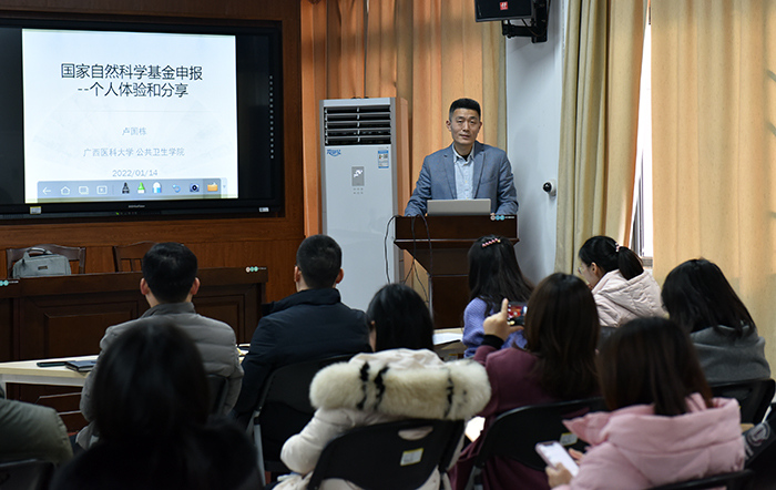 1月14日下午3点,《2022年国家自然科学基金项目申报专题讲座暨科研诚信教育活动》在自诚楼A801会议室举行,本次讲座邀请了广西医科大学卢国栋教授来Beat365分享国基金项目申请的经验。讲座由Beat365中国唯一官方网站科技处主办,公共卫生与管理学院承办,公共卫生与管理学院副院长李海教授主持了讲座,Beat365各部门、二级各学院的老师、科研人员参加聆听了此次讲座。