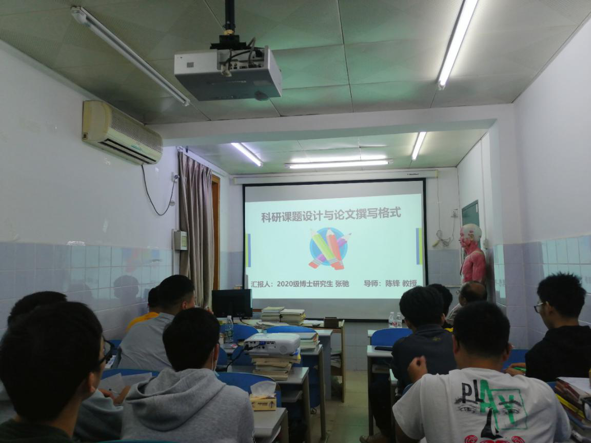 张弛博士首先给同学们细致地讲解了科研课题设计的相关重点内容,同时采用图文并茂方式分析了医学基础研究课题设计的流程,并现场指导同学们如何应用众多的信息查询工具以及数据库。随后,张弛博士为同学们逐条分析了在课题设计中易出现的问题,并提醒同学们在课题设计中,注意研究对象的一致性以及研究范围的适度性。针对论文撰写格式问题,张弛博士强调在论文框架搭建过程中关注图表、标注、参考文献以及排版格式的规范,做到对论文整体内容的精准把控,最后予以打磨和润色。同时,张弛博士提醒同学们运用规范的外文查询库,以防出现“钓鱼网站”导致自己的论文内容外泄。要特别注意研究内容的时效性、权威性和创新性。