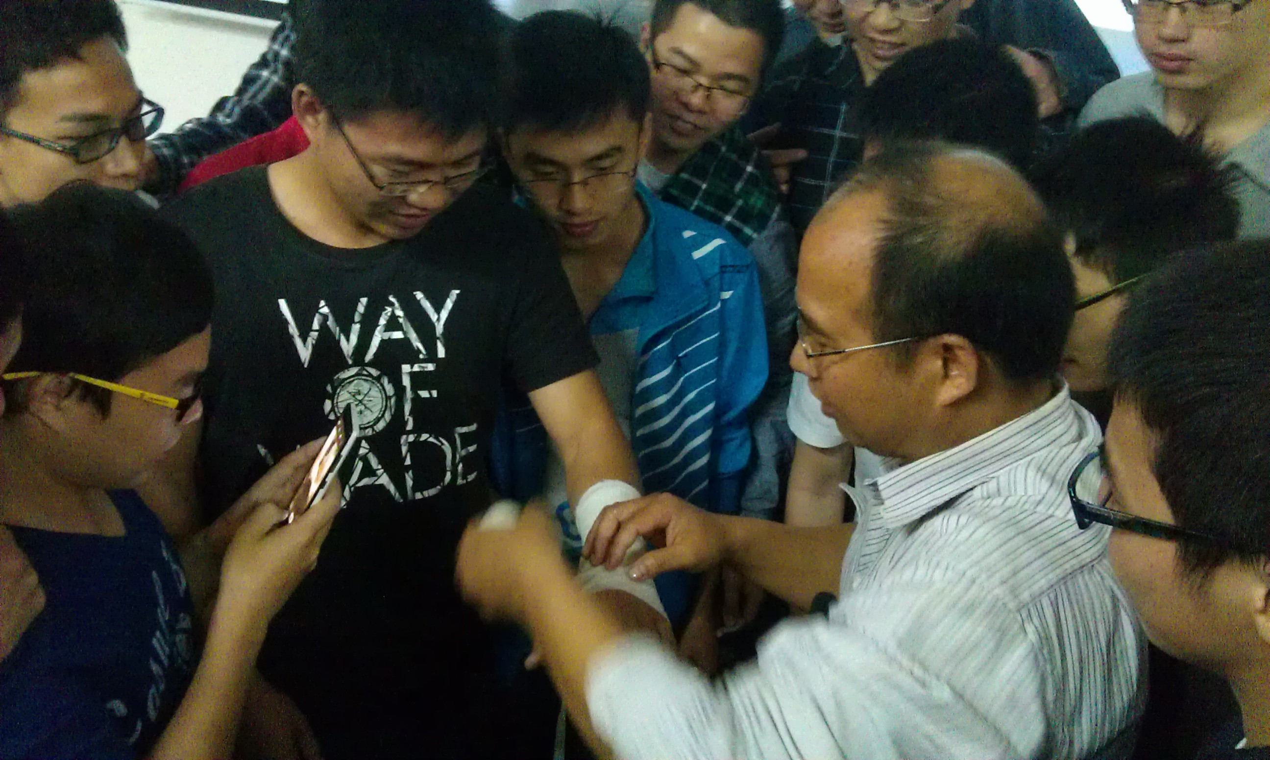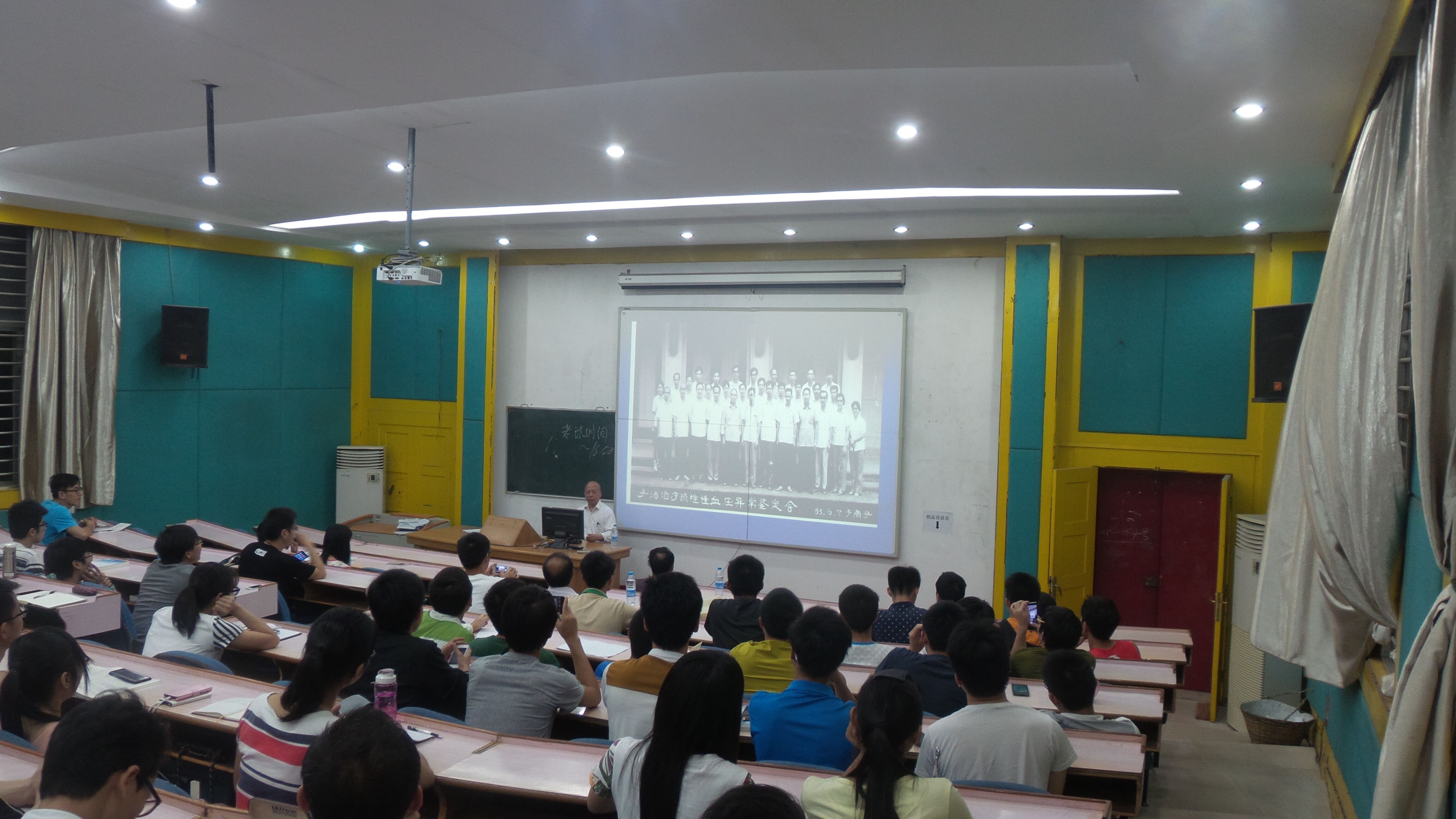 韦贵康老教授讲述了脊柱相关疾病的临床研究,还有“韦氏整脊法”,以劲椎性血压异常的研究为例,结合多年的临床经历,向我们展示了广西骨伤科学在脊柱治疗方面的先进技术,指出这项技术在全国同类研究中处于领先水平,肯定了几十年来广西骨伤科学研究的成就。韦教授还讲述了整脊手法的操作与原则,中药治疗脊柱与骨关节病损的实验与临床研究,以及整脊中力学原理的应用,给骨伤专业的同学们上了非常有意义的一堂课。最后,韦老教授指出,选择中医骨伤是正确的,不能摒弃中医,要保留中医的传统特色并发扬下去,广西骨伤的发展需要一代又一代学子的努力,鼓励同学们学好医学知识,走传统与现代相结合的道路,做一个好的骨科医生。