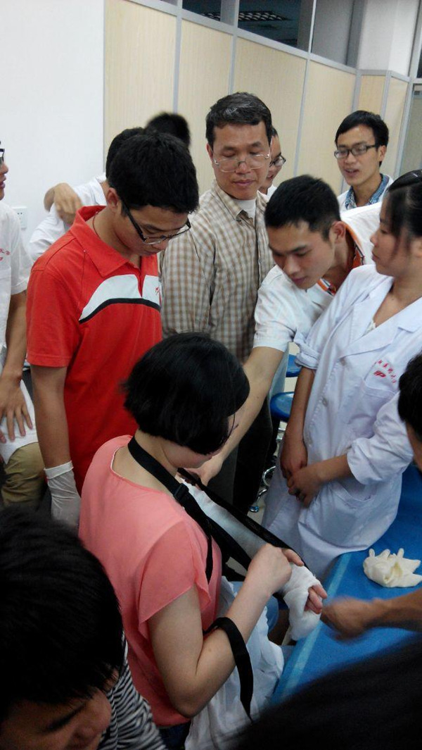 为加强骨伤学院学生对中医学(骨伤科学方向)的专业的认识,于2015年5月份进行了一系列学习交流与培训活动。活动主要分为三个阶段,第一阶段:骨伤学院教师组织学生进行骨伤科基础与手法培训;第二阶段:学生内部学习交流心得;第三阶段:医学实训中心实训。