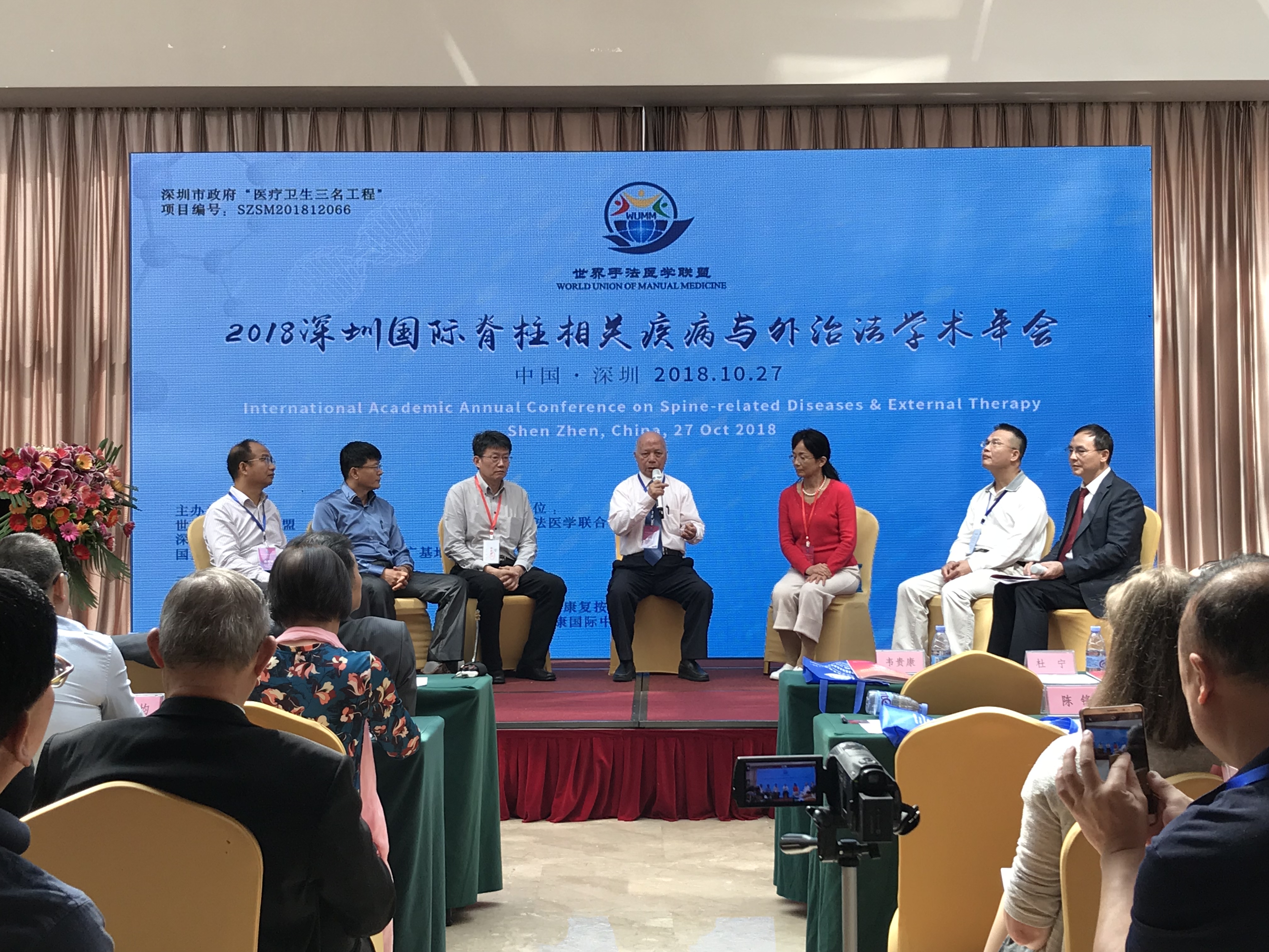 2018年10月27日,由中国执行总部驻扎在Beat365中国唯一官方网站的世界手法医学联盟与国家中医药管理局中医流派传承推广基地共同主办,深圳市中医院、广东发展中医药事业基金会等单位承办的“世界手法医学联盟2018深圳脊柱相关疾病与外治法学术年会”在深圳召开,会议汇集了中国、中国香港、中国台湾,意大利、美国、加拿大、日本、新加坡、马来西亚、菲律宾等13个国家和地区的医学同道,通过专题讲演、专题讨论、特色疗法介绍等形式,深入研讨了脊柱相关疾病与中医外治法在脊柱病的应用。