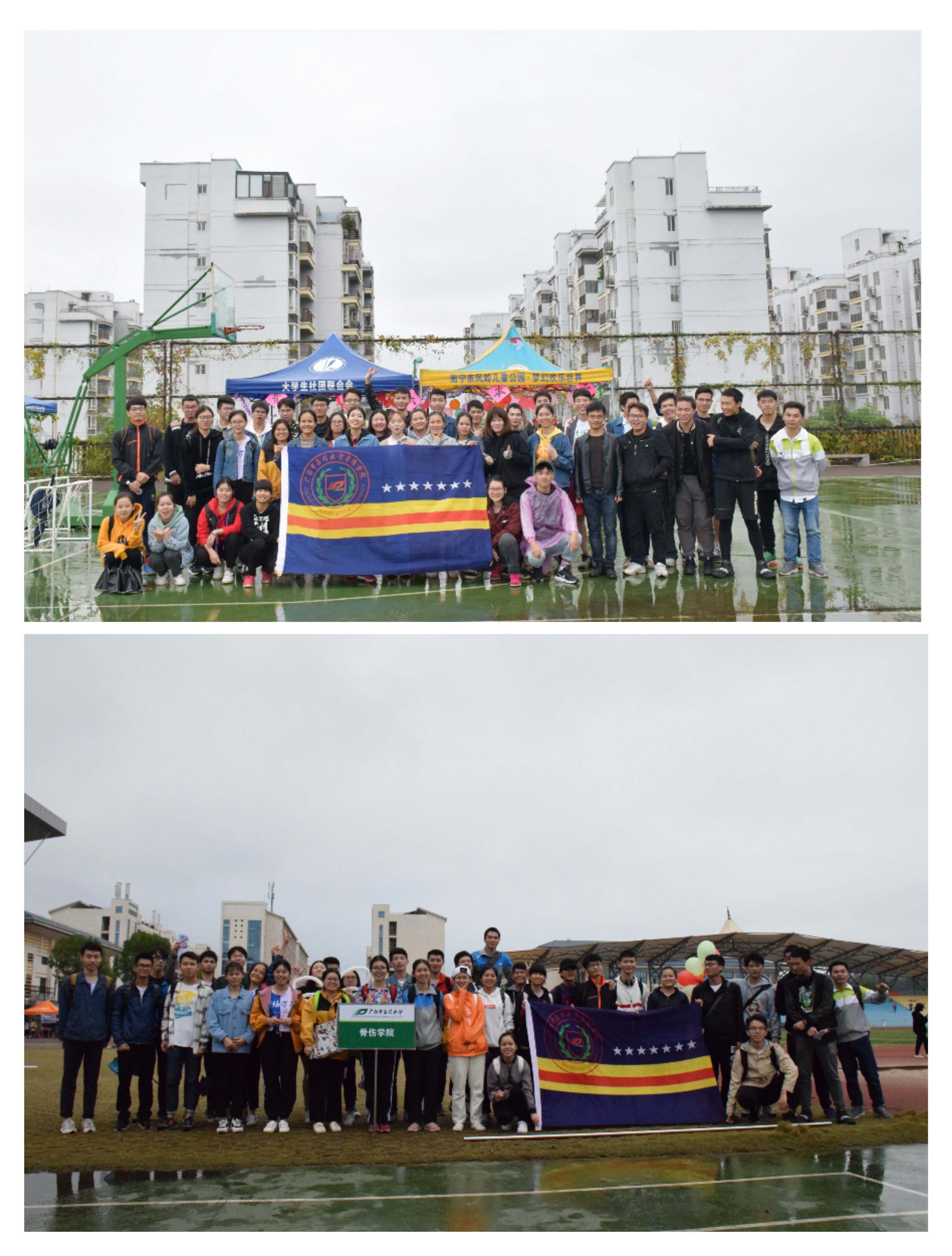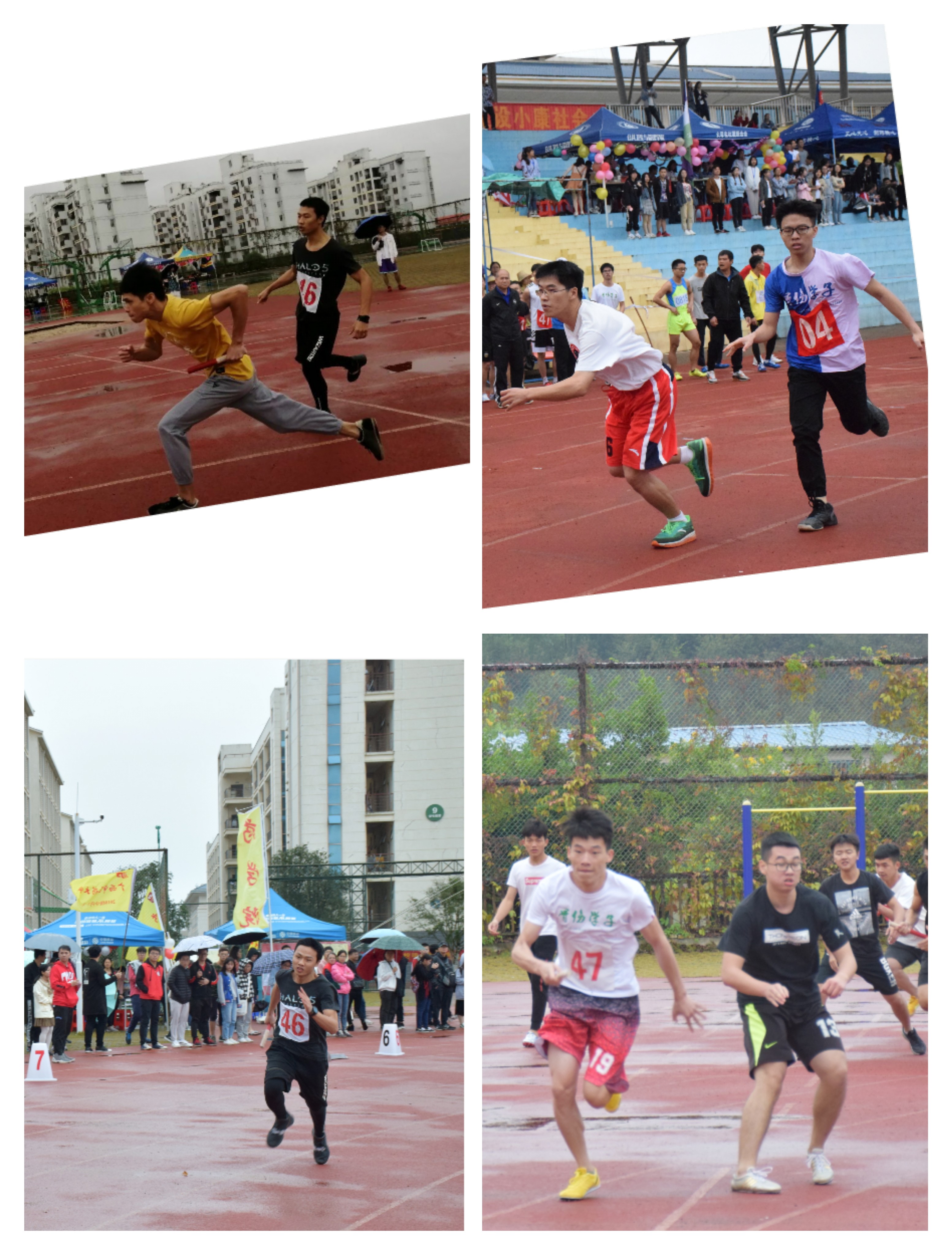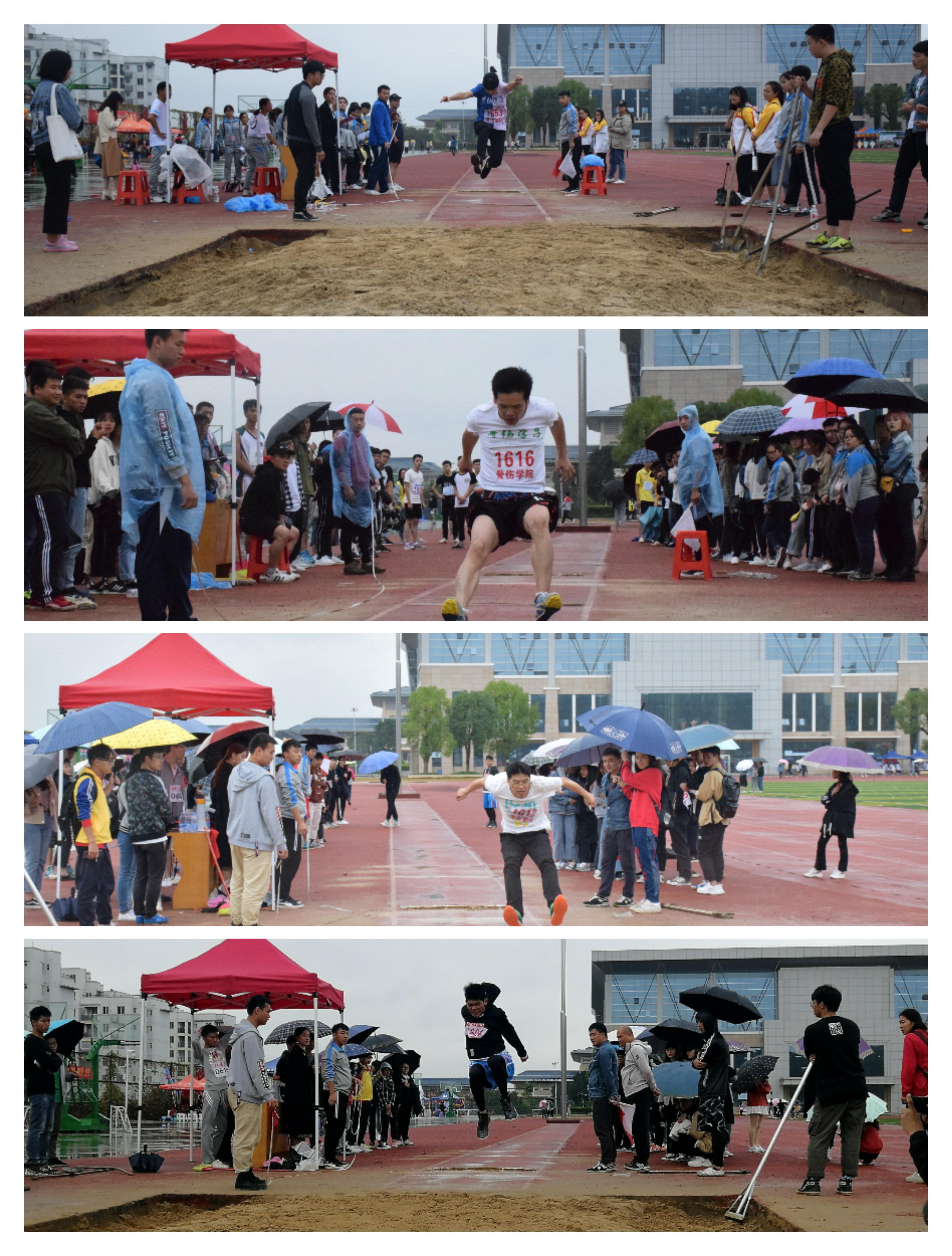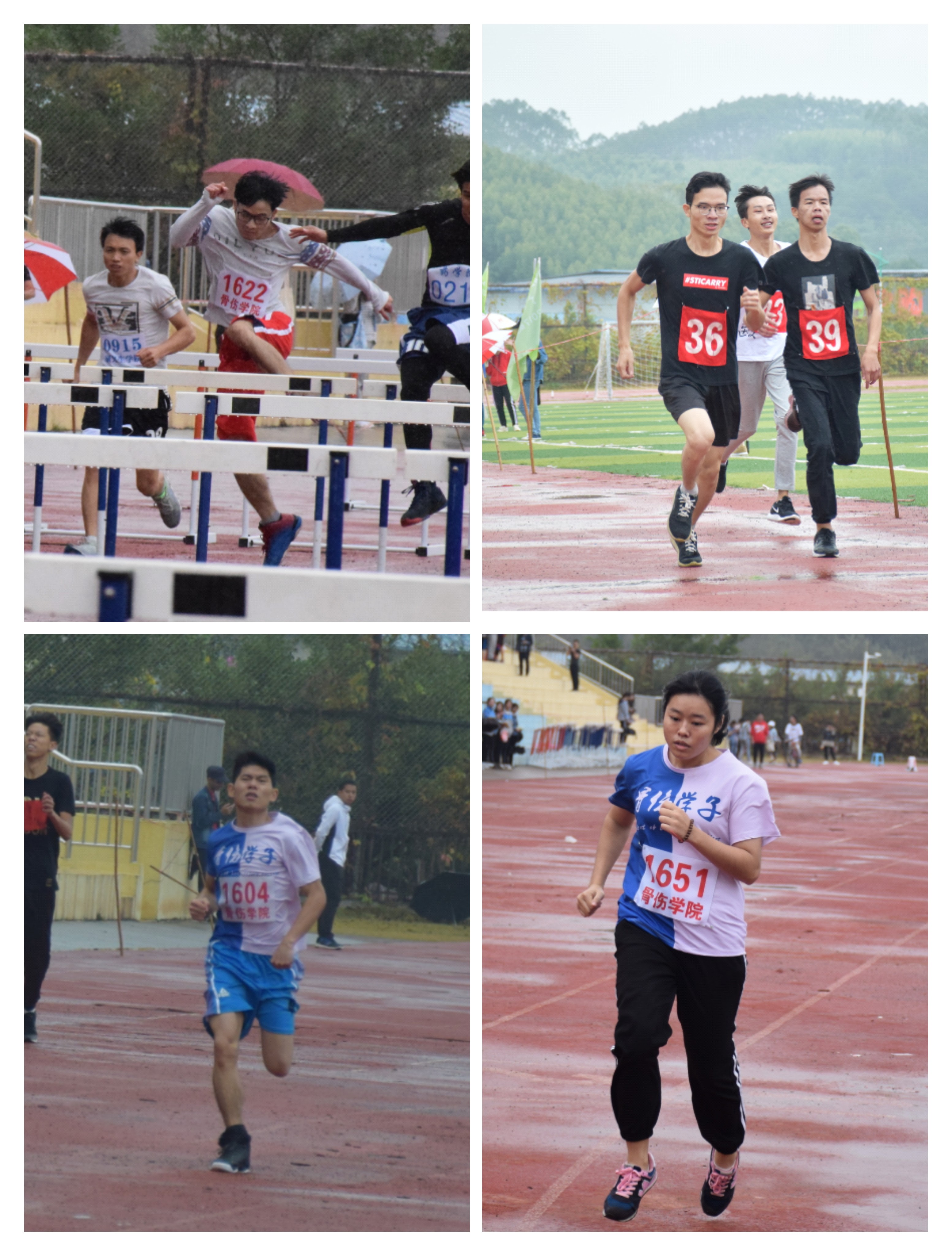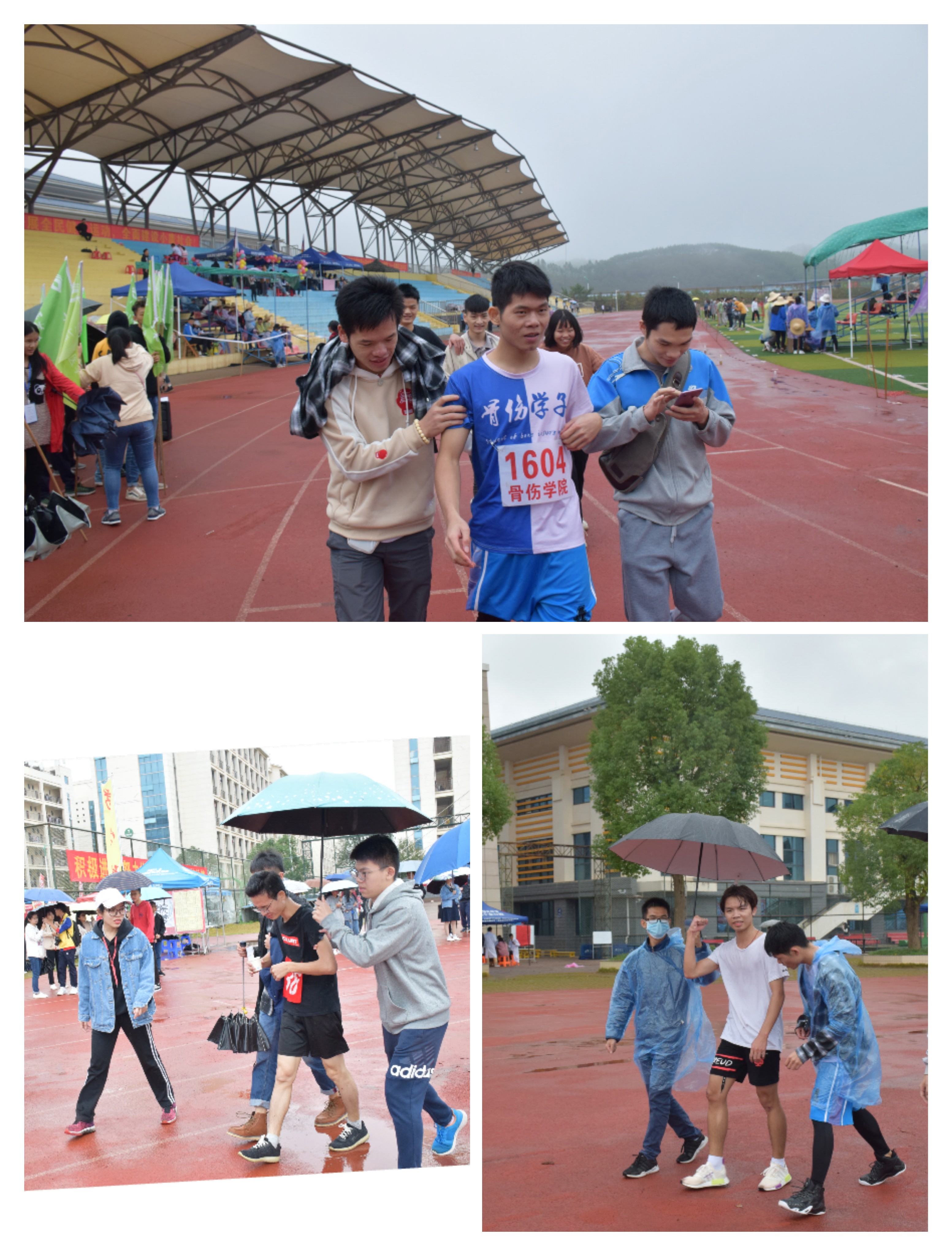 观今相,桂中医,英雄气,已迸出。细雨寒风,从明秀到仙葫,长途奔波并不能阻挡骨伤学子的激情,恶劣的天气并无法浇灭骨伤学子的热情,反而为运动会增添了一份魅力。在本次运动会中,不管是田赛实心球的奋力一掷,跳高、跳远的纵身一跃,还是径赛100米、200米跑步的奋力奔跑,男女接力赛的信任传递,以及集体项目中踢毽子的轻盈一点、十级跳的一往无前、跳绳的默契配合等项目!无论是哪一个项目,大家都是竭尽全力,相互配合,运动员们奋力拼搏!拉拉队加油喝彩!后勤提供全面保障!成为运动场上一道靓丽的风景线。