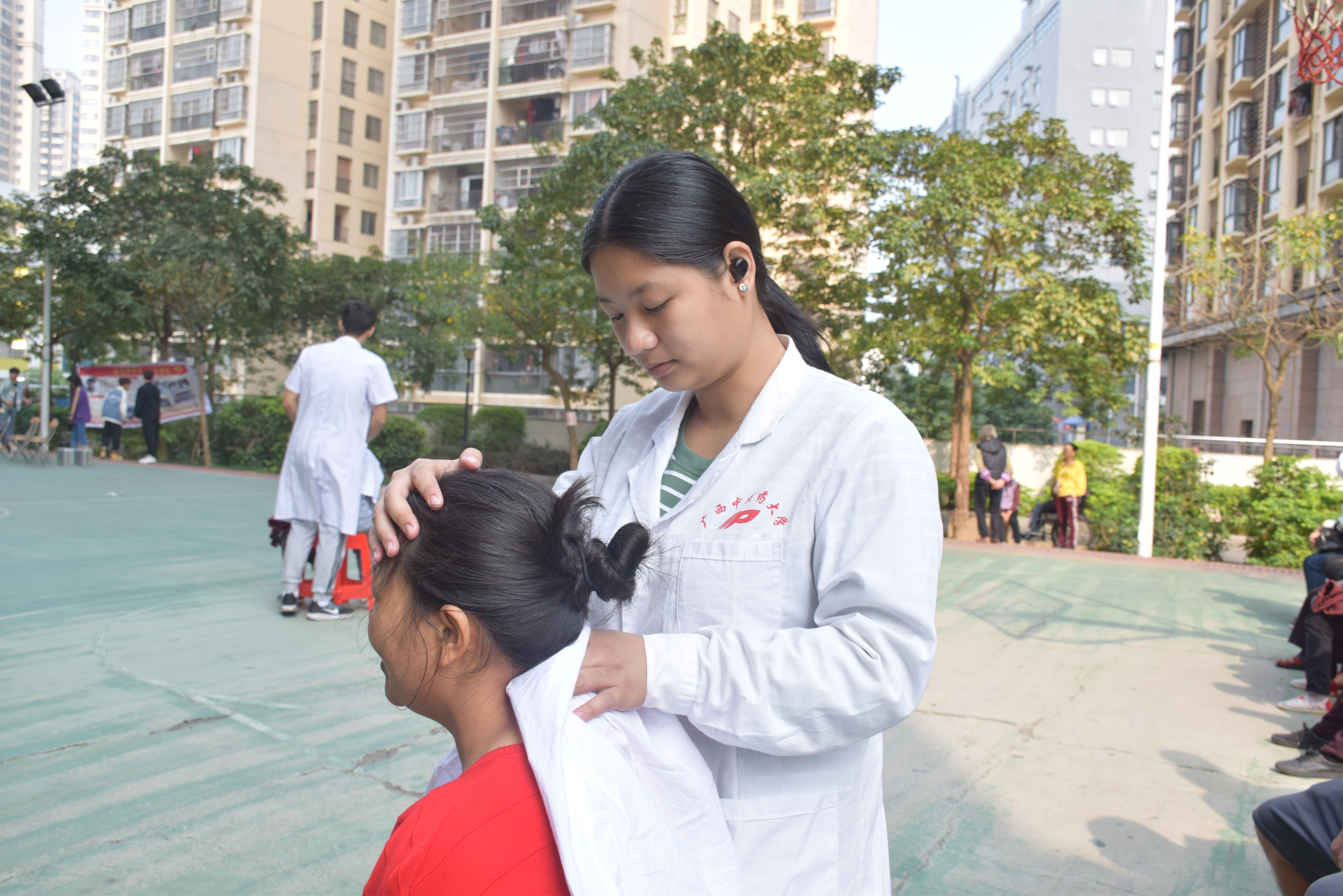 义诊当天受到社区居民的欢迎,同学们准备好义诊现场后就投入到紧张的义诊活动中,本来面积不大的义诊区域人满为患。同学们为居民进行量血压常规检查和推拿艾灸治疗,解答他们的疑问,且针对每个居民的不同情况,耐心地叮嘱他们各种日常注意事项。在义诊过程中,同学们及时发现群众的潜在病情,并向他们普及健康知识,对增强疾病预防意识,促进身体健康,尤其对冬季多发病的预防起到了重要作用。在义诊服务活动中,同学们的热情和服务赢得了社区居民的信任和好评。