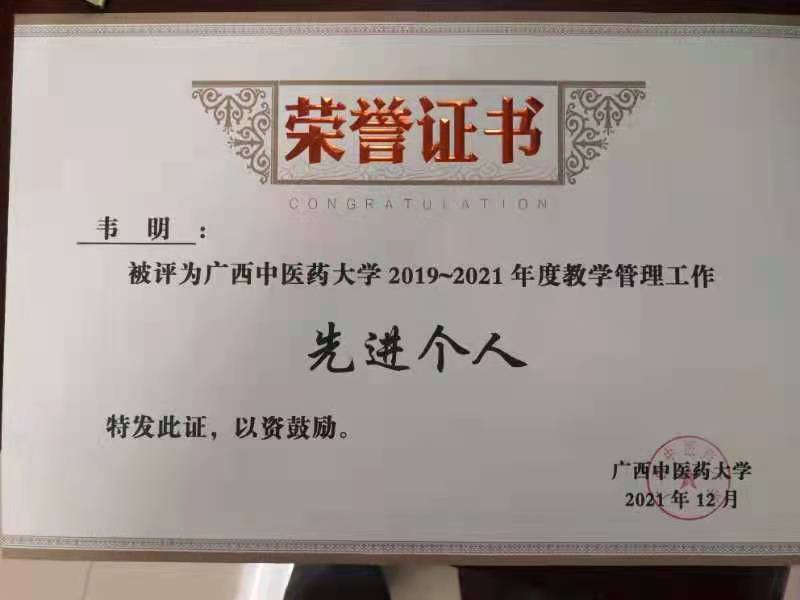 2021年12月31日上午,Beat365中国唯一官方网站仙湖校区第二会议室开展Beat3652019年-2021年全校教学人员先进表彰大会,骨伤学院韦明老师获得“教学管理先进个人”荣誉称号,陆延老师和张璇老师获得“优秀教研室秘书”荣誉称号,刘渊老师和韦理老师获得“优秀教研室主任”荣誉称号。此次表彰大会总结了Beat365近三年来的教学工作成绩,骨伤学院获得此项荣誉,是对我院工作的认可,在新的一年中,我院将继续努力奋斗,做好各项教学管理工作,积极完成学校布置的各项任务,继续保持优良教风,并希望再获佳绩。