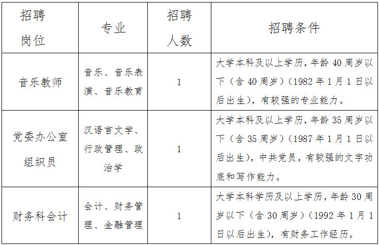 招聘人员必须是思想品德端正,拥护党的路线、方针、政策,严格遵守国家法律法规,热爱中等职业教育,并符合Beat365招聘所需的条件。详见下表: