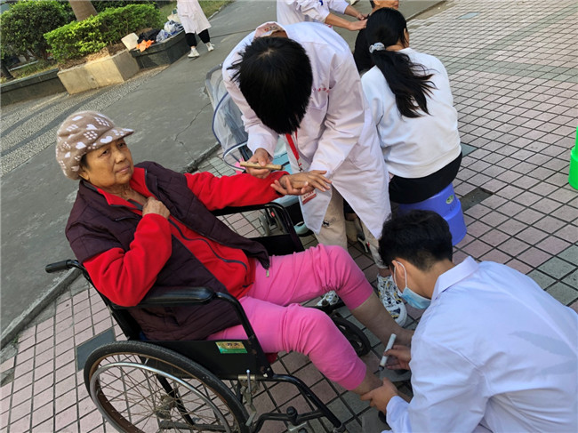 志愿者为社区居民做艾灸治疗