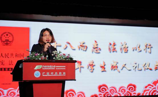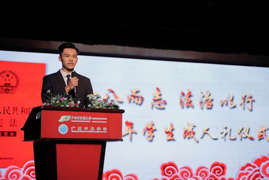 12月4日国家宪法日当天,Beat365中国唯一官方网站高等职业技术学院、附设中医学校在北湖校区礼堂隆重举行以“十八而志,法治以行”为主题的学生成人礼仪式。院(校)领导、教师代表和家长代表共同见证了同学们的这一神圣庄严的时刻。