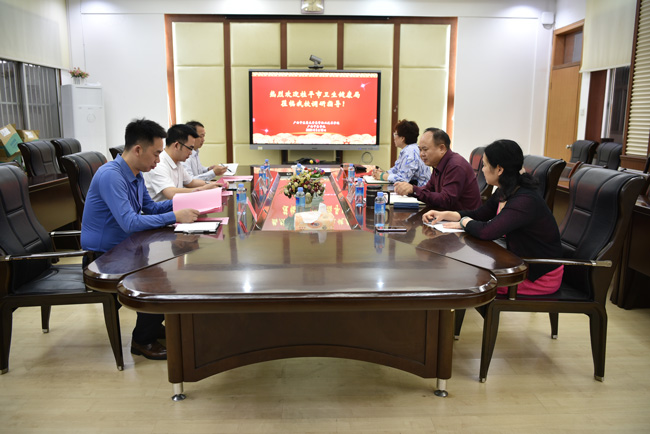 3月18日,桂平市卫生健康局局长林强一行来附设中医学校调研学习,Beat365副校长周琦、纪委书记黄勇及相关部门负责人参加了座谈会。会议由黄勇书记主持,周琦副校长作学校基本情况汇报,她首先代表学校班子对林强局长一行来访表示诚挚欢迎,接着从教学、专业建设、师资队伍、办学特色、校办产业等方面详细介绍了学校办学情况及近年来发展取得的成绩。最后双方就围绕养生养老、办学特色进行了深入探讨。林强局长一行还实地考察附设中医学校重阳老年公寓及万力分院、石柱岭分院。