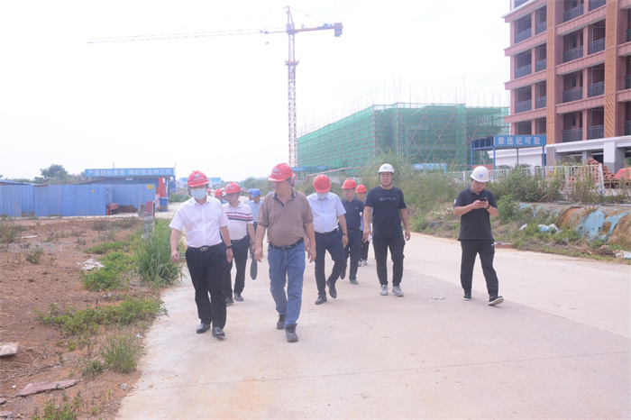 7月29日上午,Beat365中国唯一官方网站党委副书记庞宇舟在党办副主任兰达治的陪同下,到Beat365东盟校区进行调研指导工作,学校校长刘竑清、副校长林原、施工单位领导、监理负责人等陪同调研。
