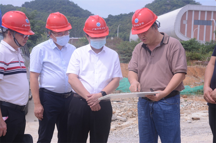 随后,庞宇舟一行进行了实地走访调研。庞宇舟对学校东盟校区建设取得的成绩表示肯定,并针对下一步的工作提出了指导意见:一是要把安全生产工作放在首位,要根据天气的变化,合理调整工人的作业时间,以确保施工安全;二是要做好沟通协调,做好多方单位的统筹协调,保质保量的完成好东盟校区的建设工作;三是要加大建设资金的筹集,要多方共同努力,加快推进东盟校区的建设,争取尽早投入使用。