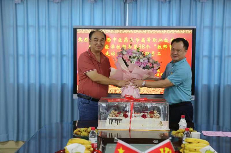 三尺讲台站八斗学士,一尺课桌载千秋之梦 。教师是立教之本、兴教之源,在第 38 个教师节即将来临之际,高职院、 中医学校党委书记蒋子华、院(校)长刘竑清、副院(校)长周琦、林原、纪委书记黄勇分别在相关科室负责人的陪同下走访慰问了护理专业部、德育人文体育专业部、医学基础专业部、药学专业部、中医专业部、临床专业部、中心实验室及学校附属单位的教师,向长期奋战在教学、养老服务、康体保健、幼教一线的教师们致以节日的问候和崇高的敬意!