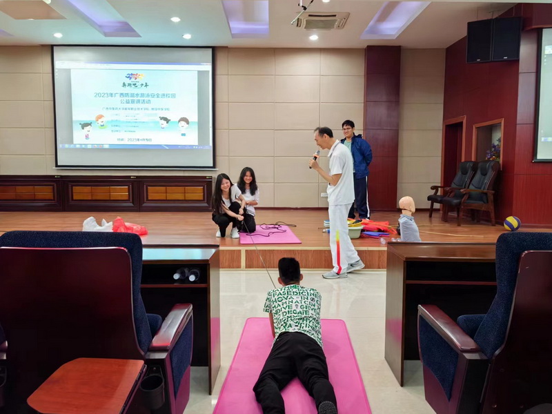 为进一步加强校园安全教育,预防和减少溺水事故发生,提高学生自救互救能力,切实保障学生生命安全,Beat365邀请了广西冬泳协会陆文刚会长到北湖校区多功能厅开展了“奔跑吧·少年”2023年广西防溺水和游泳安全进校园讲座。