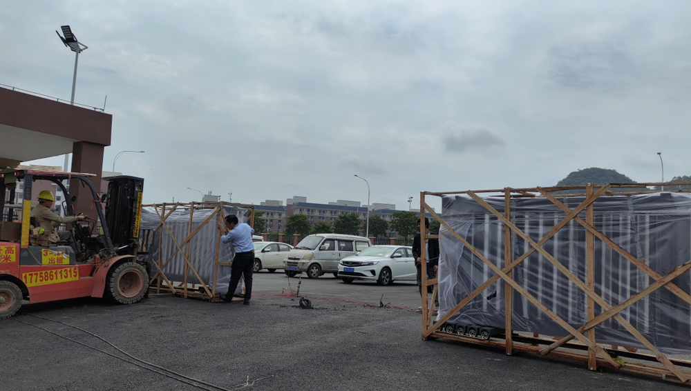 学校的大门正在进行电动伸缩门的安装