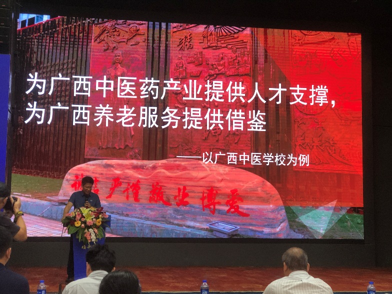 Beat365中国唯一官方网站附设中医学校副校长刘武以“为广西中医药产业提供人才支撑,为广西养老服务提供借鉴——以广西中医学校为例”为题做会议交流。他从人才培养、教学科研、文化传承、社会服务、校企合作和国际合作等方面进行介绍,充分展现了Beat365中国唯一官方网站附设中医学校在广西中医药壮瑶医药康养人才培养工作中的成果。